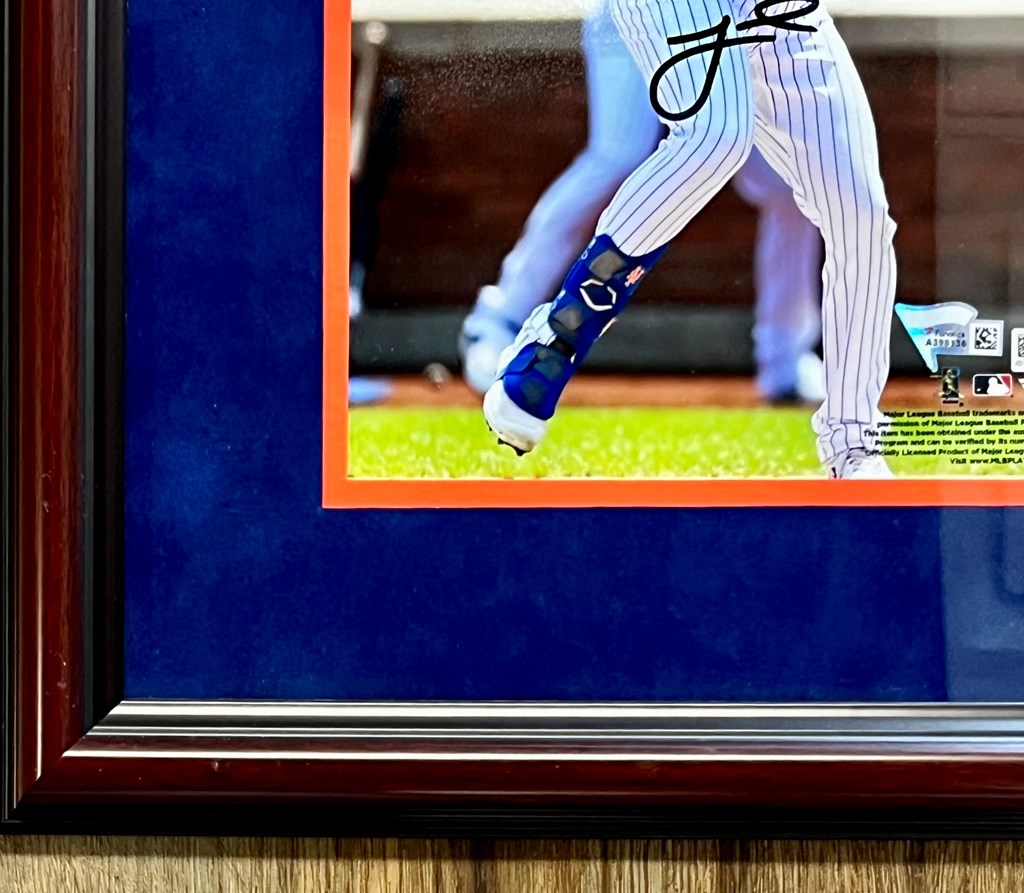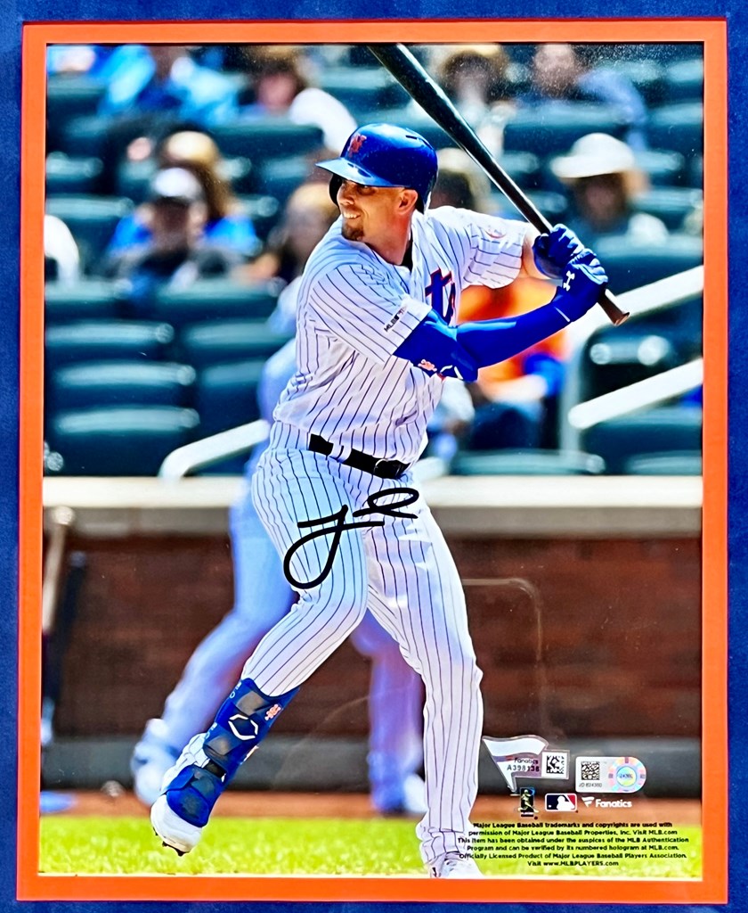 Jeff McNeill New York Mets Signed Photograph by Jeff McNeill Photograph Size 8" x 10" Custom Framed Size: 16" x 14" Comes with a Certificate of Authenticity From Fanatics Museum Quality Custom Framing Details: Custom framed in a 1" cherry frame. Double matted with blue suede outer mat and orange inner matting. 100% acid free matting to museum standards. Enclosed in conservation clear glass 99% UV protection to keep the signature & art from fading. Dust covered backed, wired ready for hanging.