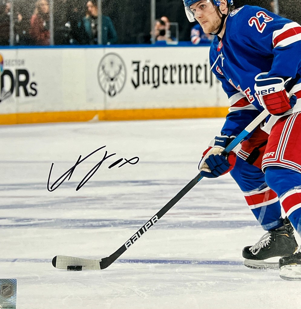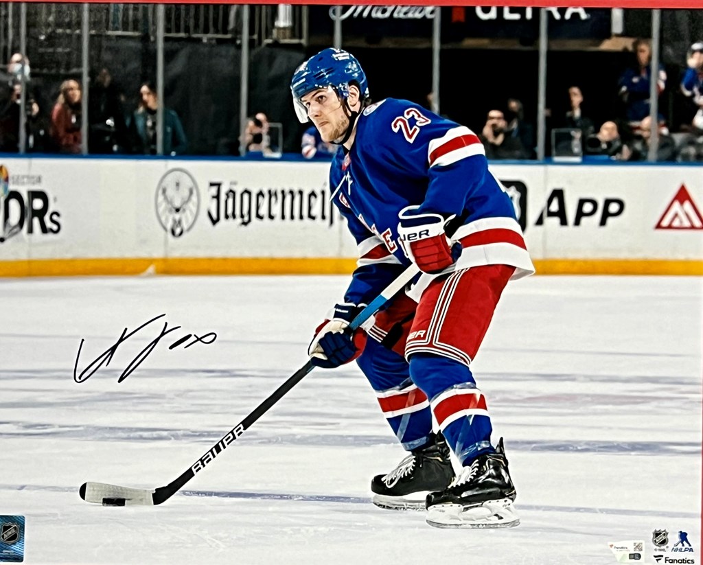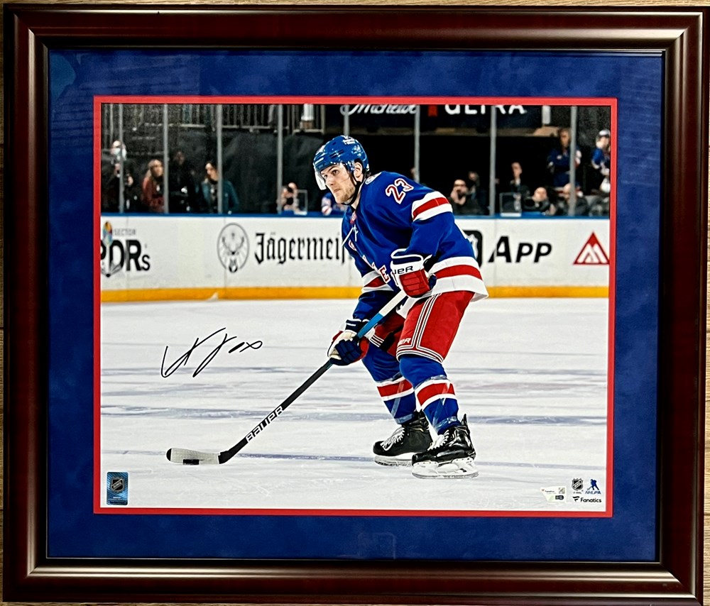 Adam Fox New York Rangers Signed Photograph by Adam Fox Photograph Size 16" x 20" Custom Framed Size: 22" x 26" Comes with a Certificate of Authenticity From Fanatics, Inc Museum Quality Custom Framing Details: Custom framed in a 2" cherry frame. Double matted with blue suede outer mat and red inner matting. 100% acid free matting to museum standards. Enclosed in conservation clear glass 99% UV protection to keep the signature & art from fading. Dust covered backed, wired ready for hanging.