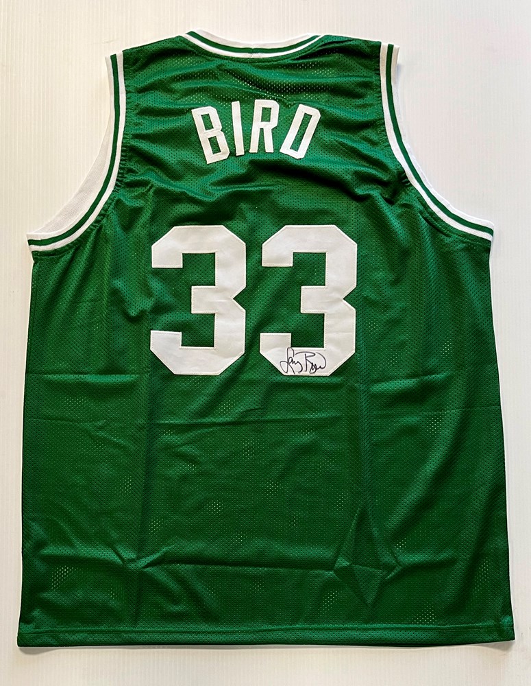 Larry Bird Boston Celtics Custom Boston Celtics green jersey signed perfectly by Hall of Famer Larry Bird. Jersey comes with a Letter of Authenticity from Long Island Silent Auction.