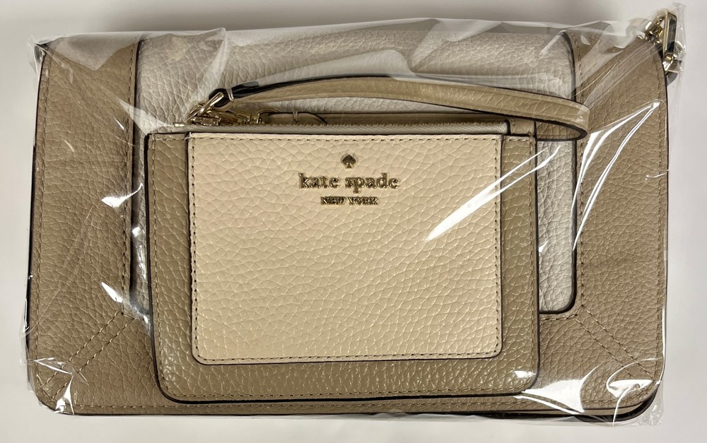 Kate Spade Lena Color block Light Sand Leather Crossbody Bag with c/c Wallet