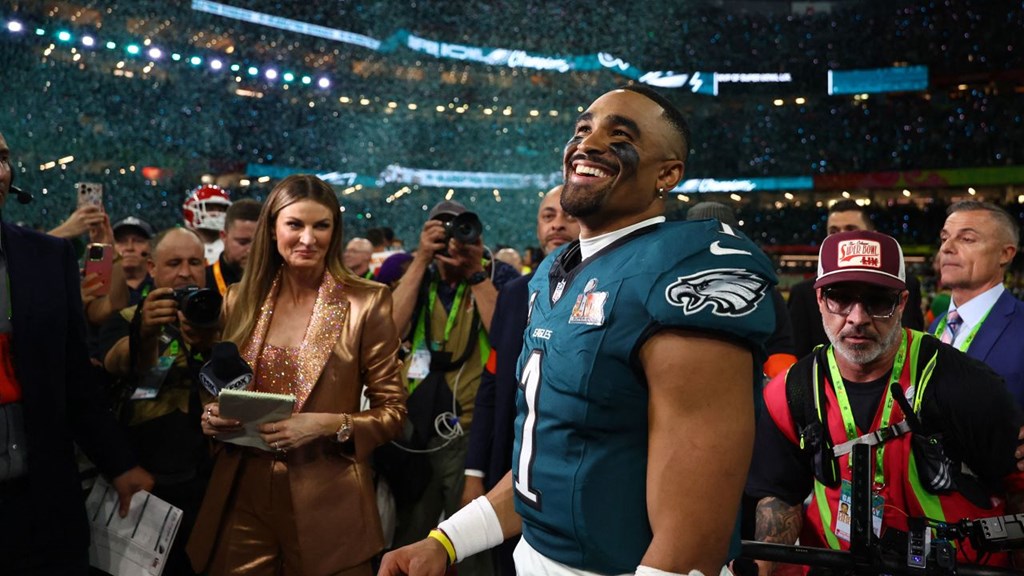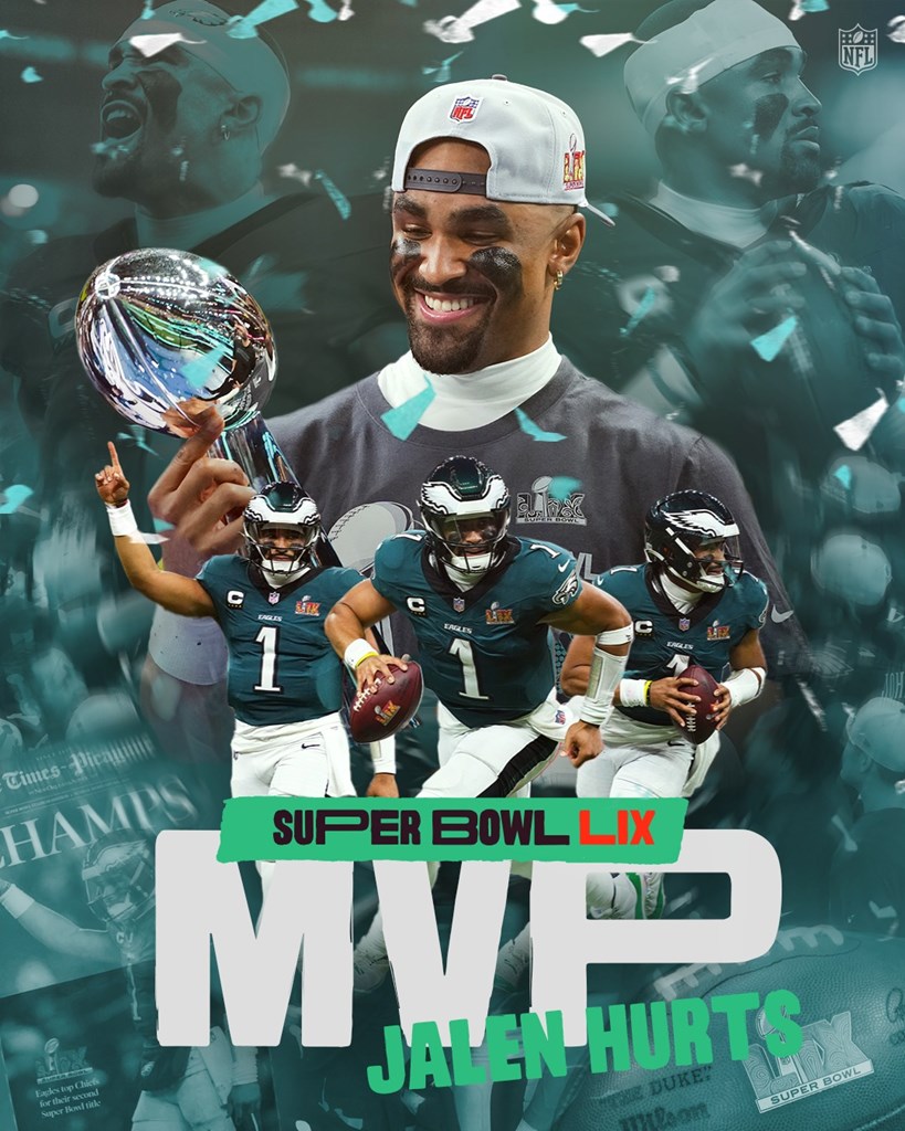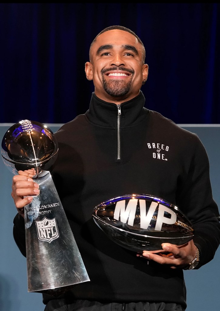JALEN HURTS PHILADELPHIA EAGLES AUTOGRAPHED AUTHENTIC SUPER BOWL LIX CHAMPIONS NIKE MIDNIGHT GREEN