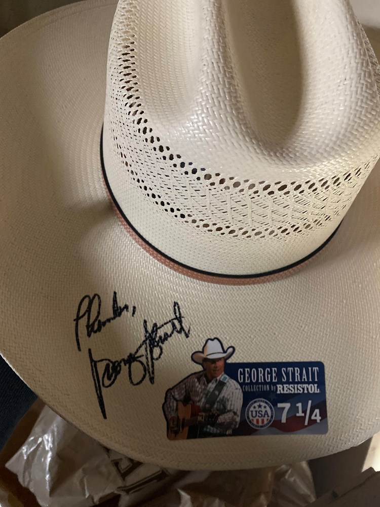 AUTOGRAPHED GEORGE STRAIT STRAW COWBOY AND BASEBALL CAP!