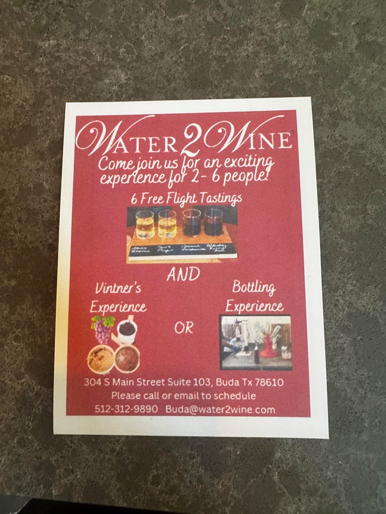 WINE FLIGHTS OR 6 GLASSES - YOUR CHOICE! FOR 2–6 GUESTS AT WATER 2 WINE (BUDA, TX)