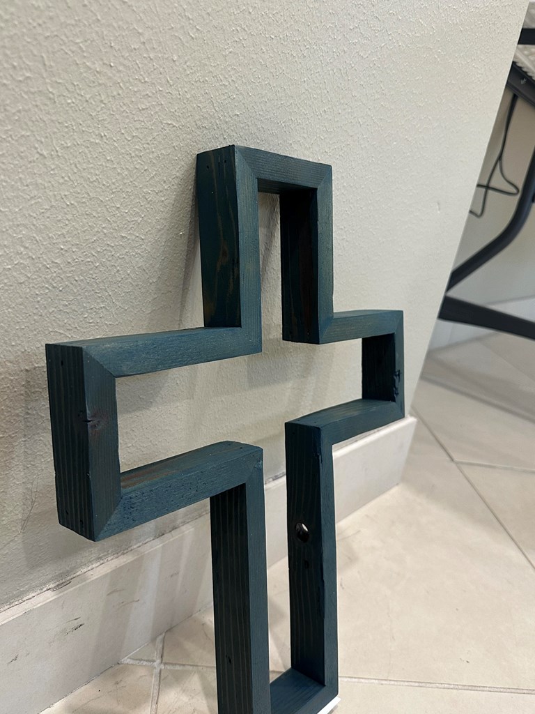 Handmade green wooden cross